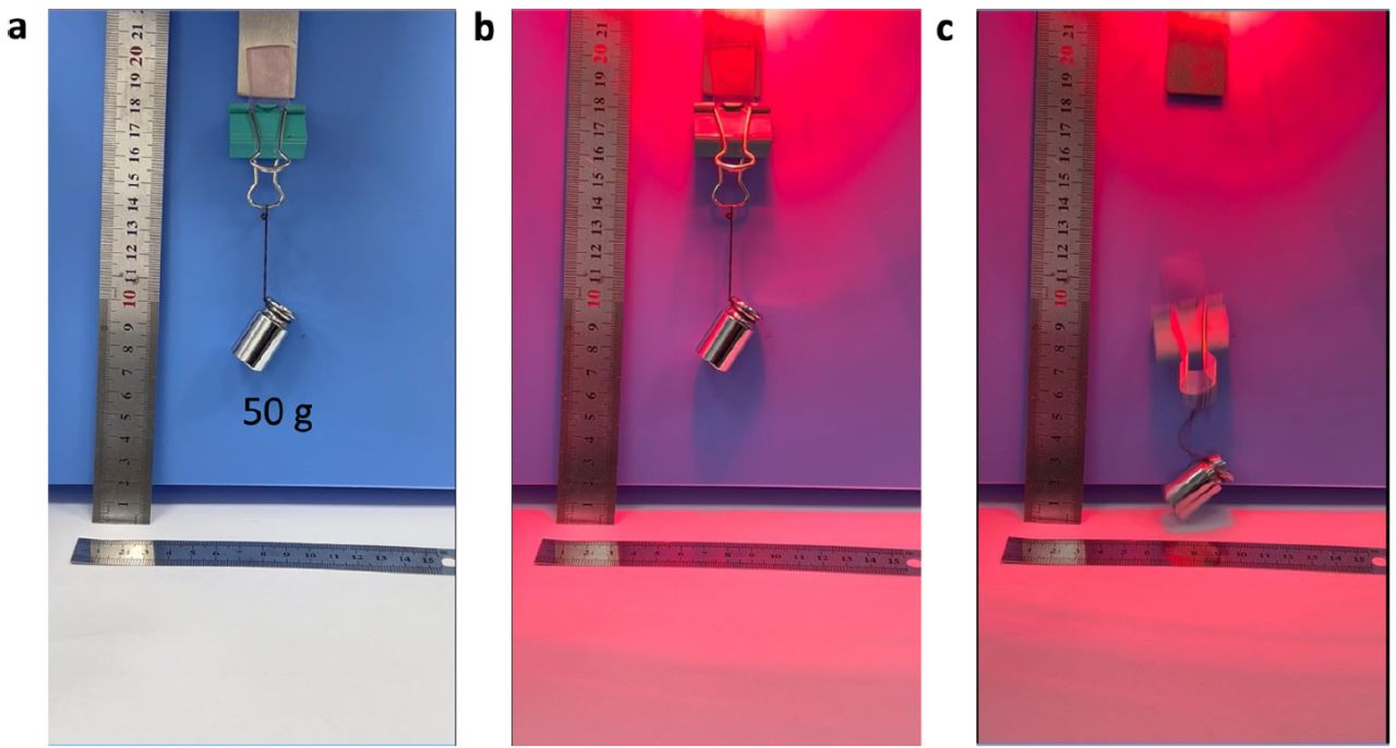 此外,在機(jī)器人領(lǐng)域,這種材料有望成為“輕量化黏附足部”的理想選擇?!败涹w機(jī)器人需要在垂直甚至倒掛的表面快速移動(dòng),傳統(tǒng)電磁或真空吸附系統(tǒng)又重又耗能。而我們的材料僅需一束光,就能實(shí)現(xiàn)高效攀爬。”周峰補(bǔ)充道。