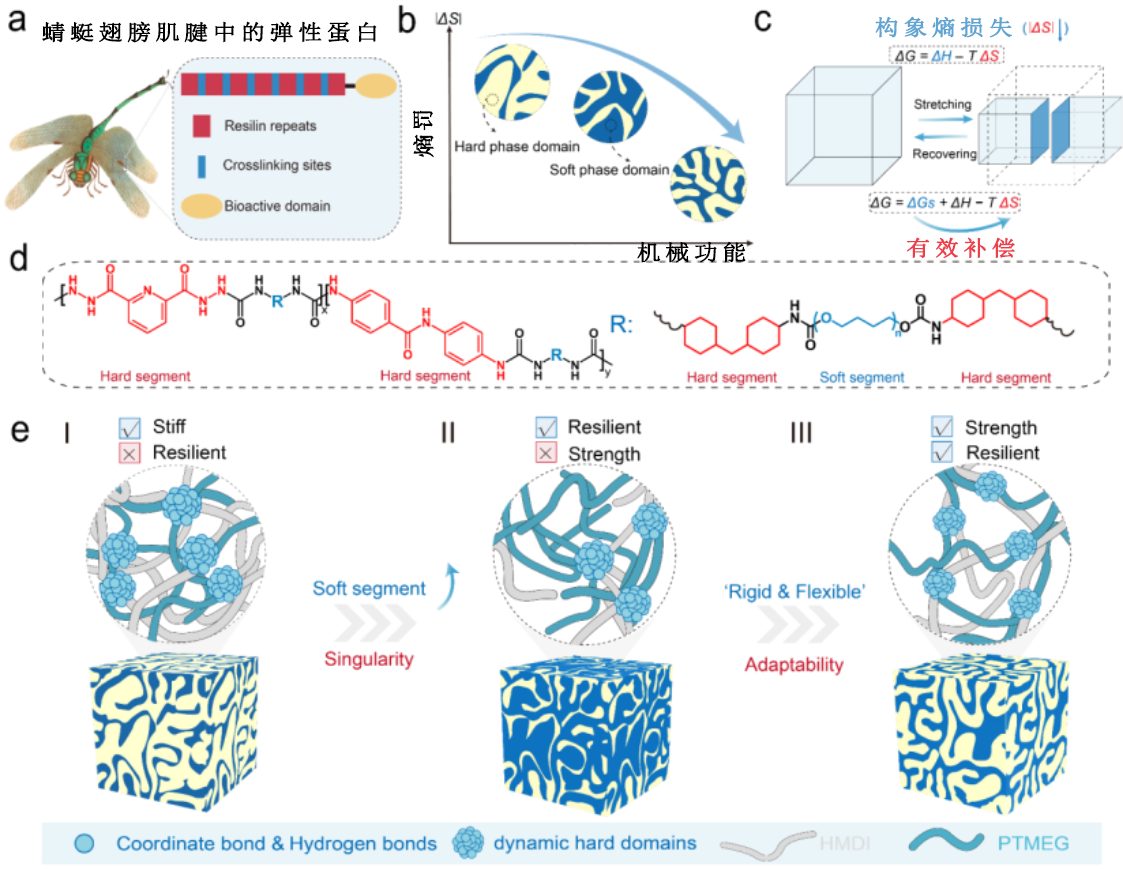 受蜻蜓角質(zhì)層中彈性蛋白啟發(fā)的可調(diào)聚氨酯彈性體設計制備示意圖