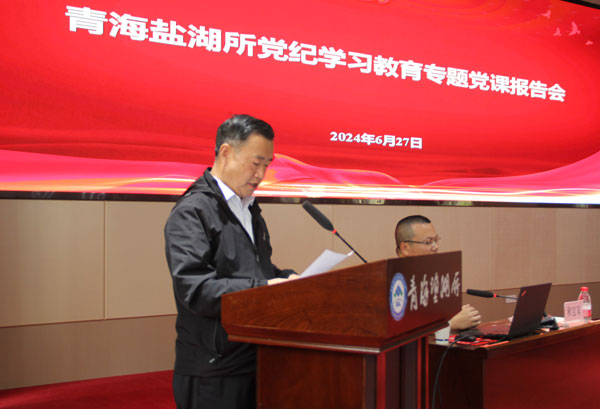 為深入學(xué)習(xí)貫徹習(xí)近平新時代中國特色社會主義思想和黨的二十大精神,進(jìn)一步學(xué)習(xí)貫徹習(xí)近平總書記關(guān)于黨紀(jì)學(xué)習(xí)教育重要講話和重要指示批示精神以及習(xí)近平總書記6月18日視察青海時的重要講話精神,引導(dǎo)全所黨員干部堅定理想信念,強(qiáng)化黨性修養(yǎng),扎實推動黨紀(jì)學(xué)習(xí)教育走深走實,6月26日至27日,青海鹽湖所黨委根據(jù)黨紀(jì)學(xué)習(xí)教育工作安排,在處級及以上黨員領(lǐng)導(dǎo)干部及黨支部書記培訓(xùn)班過程中舉辦全所黨員黨紀(jì)學(xué)習(xí)教育“七一”專題黨課報告會。報告會邀請中共青海省委黨校哲學(xué)教研部主任張建、中共青海省委黨校黨史黨建教研部副教授和寶軍講授專題黨課。所黨委委員、紀(jì)委委員、中層干部、黨支部委員、職工黨員和研究生黨員參會。會議由黨委書記、黨紀(jì)學(xué)習(xí)教育工作小組組長王永晏主持。??