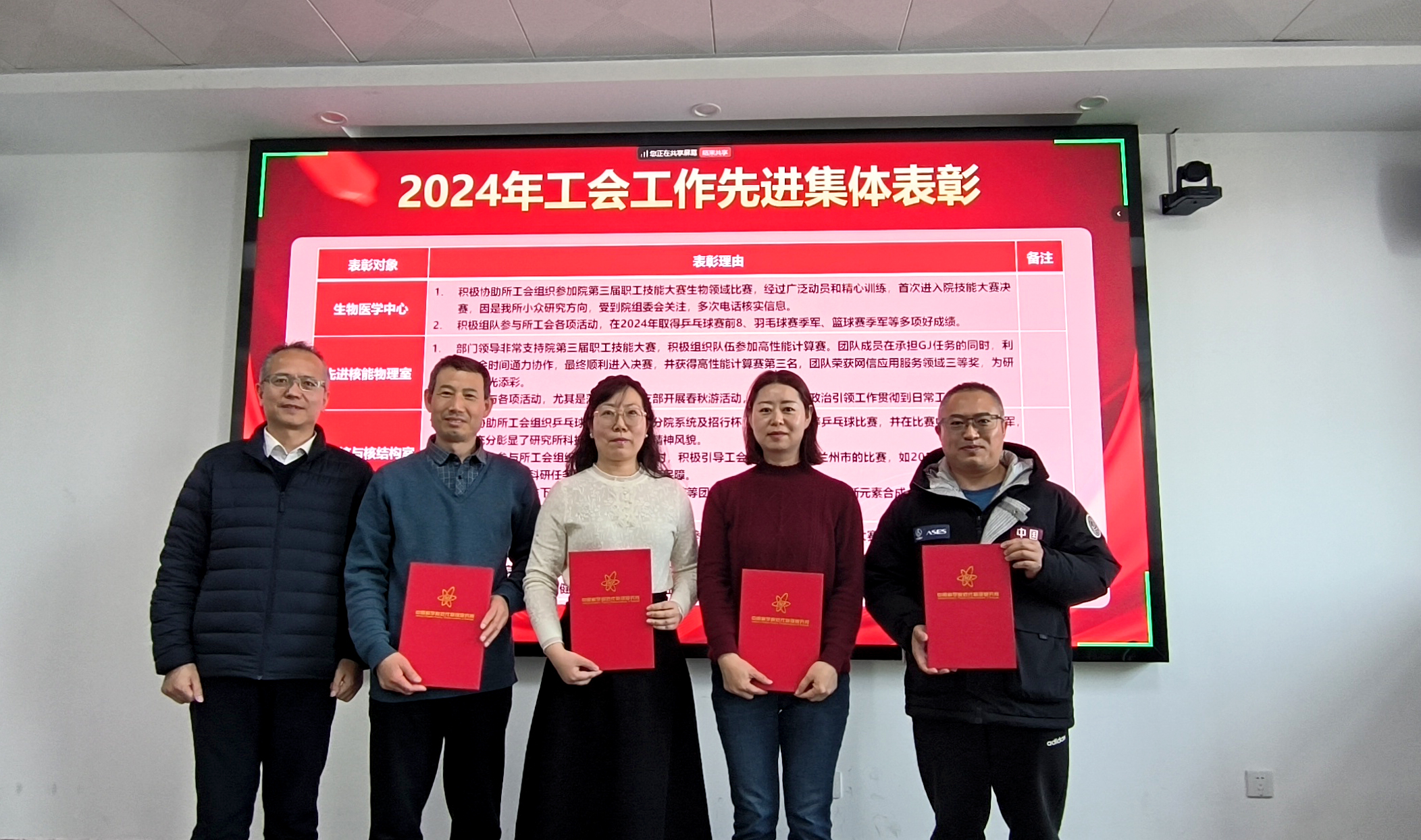 所黨委委員、工會(huì)副主席張雪熒為2024年工會(huì)工作先進(jìn)集體和先進(jìn)個(gè)人頒發(fā)證書,并對(duì)大家一年來的辛勤付出表示感謝和肯定。希望在新的一年凝聚共識(shí),齊心協(xié)力為研究所發(fā)展獻(xiàn)言建策,增強(qiáng)工會(huì)組織活力,以高質(zhì)量工會(huì)工作服務(wù)全所職工,服務(wù)搶占科技制高點(diǎn)中心任務(wù)。