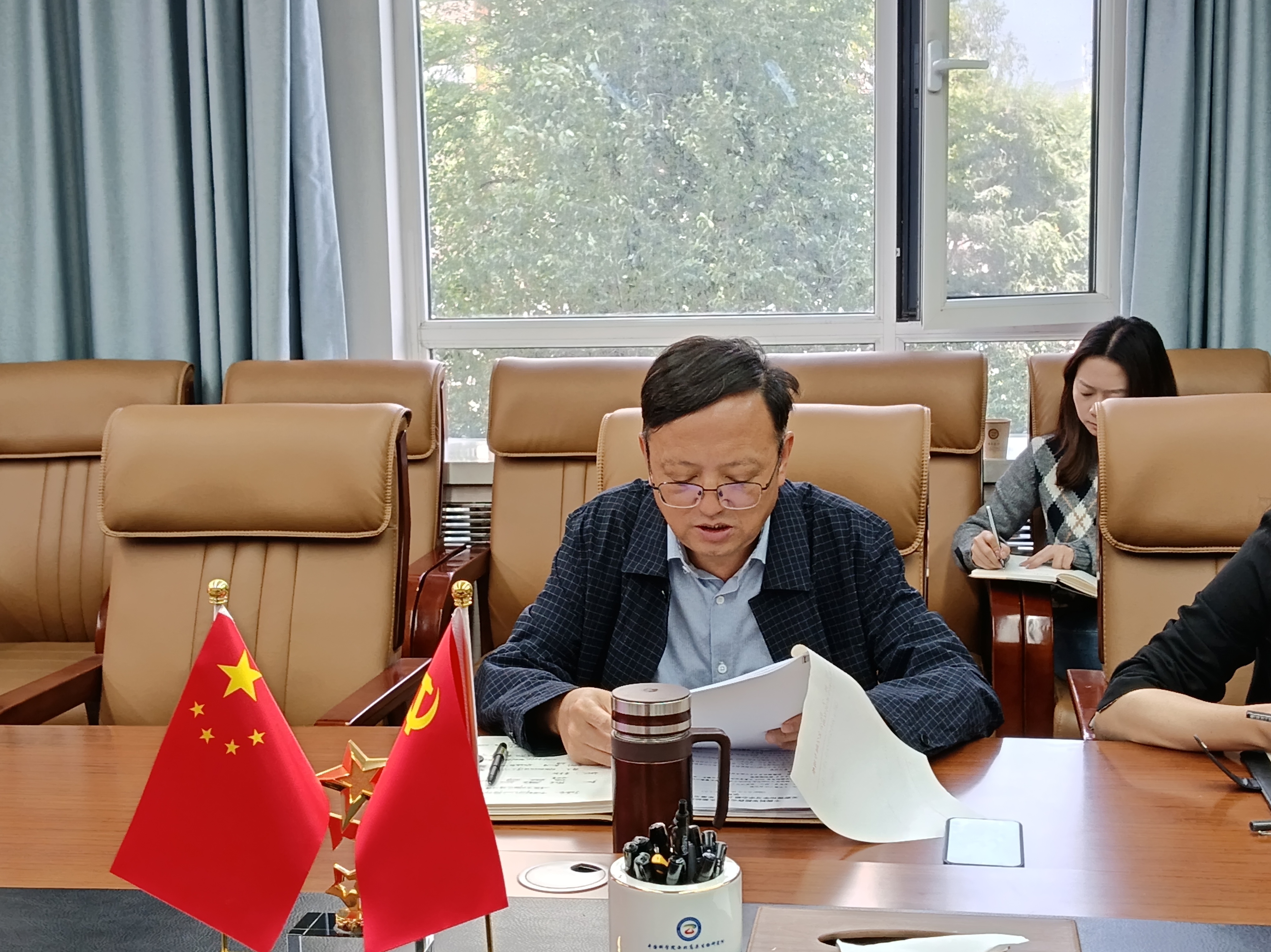 陳世龍主持會議并傳達相關(guān)文件精神