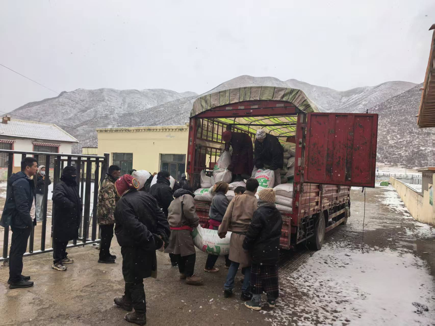 卸載飼料向牧民發(fā)放