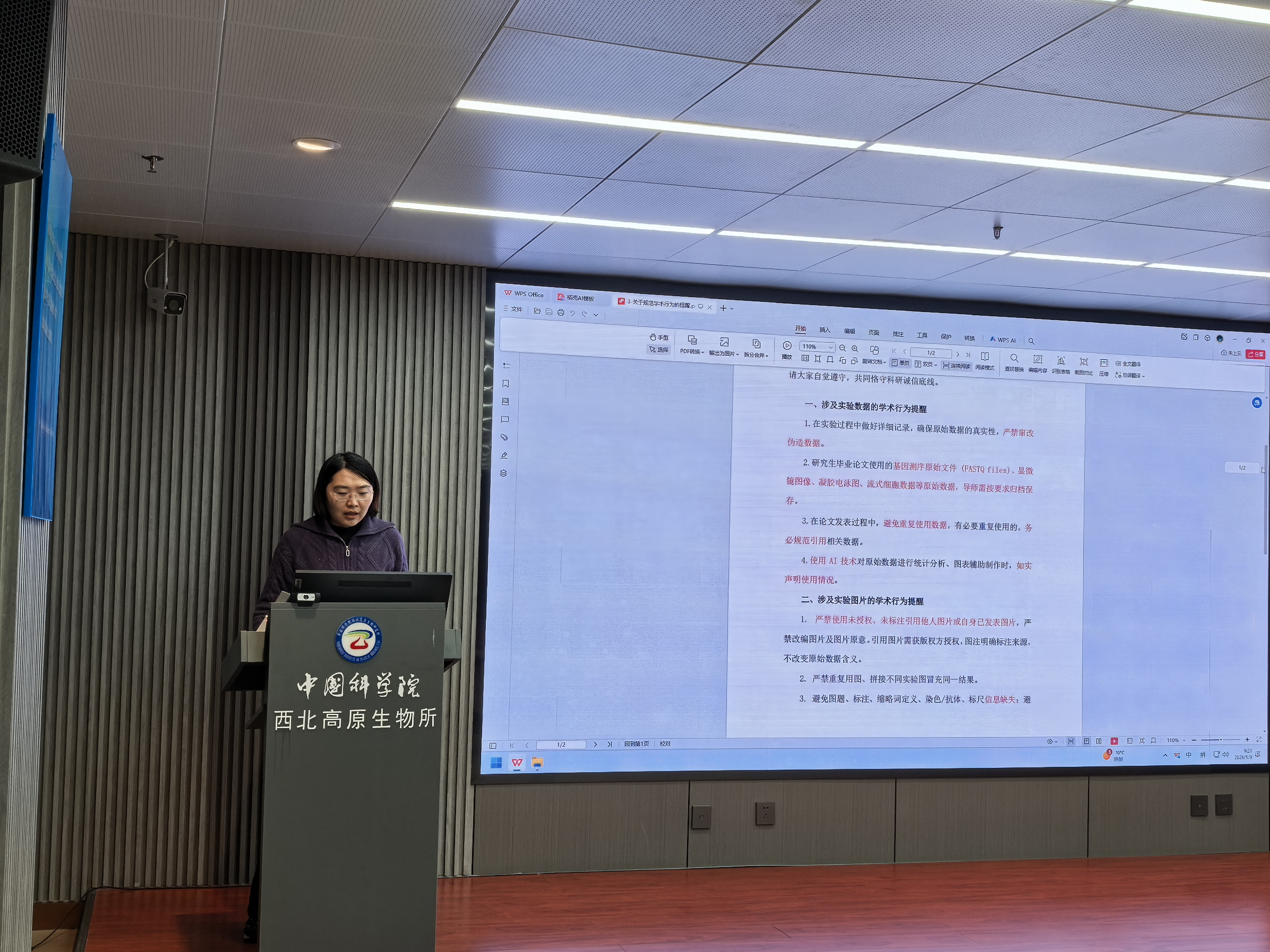 隨后,組織委員兼紀(jì)檢委員李彩霞傳達(dá)學(xué)習(xí)了中國科學(xué)院西北高原生物所學(xué)術(shù)委員會《關(guān)于規(guī)范學(xué)術(shù)行為的提醒》,與會人員集體觀看了科研誠信教育視頻《學(xué)術(shù)倫理:青年學(xué)者必須跨越的五條治學(xué)門檻》。