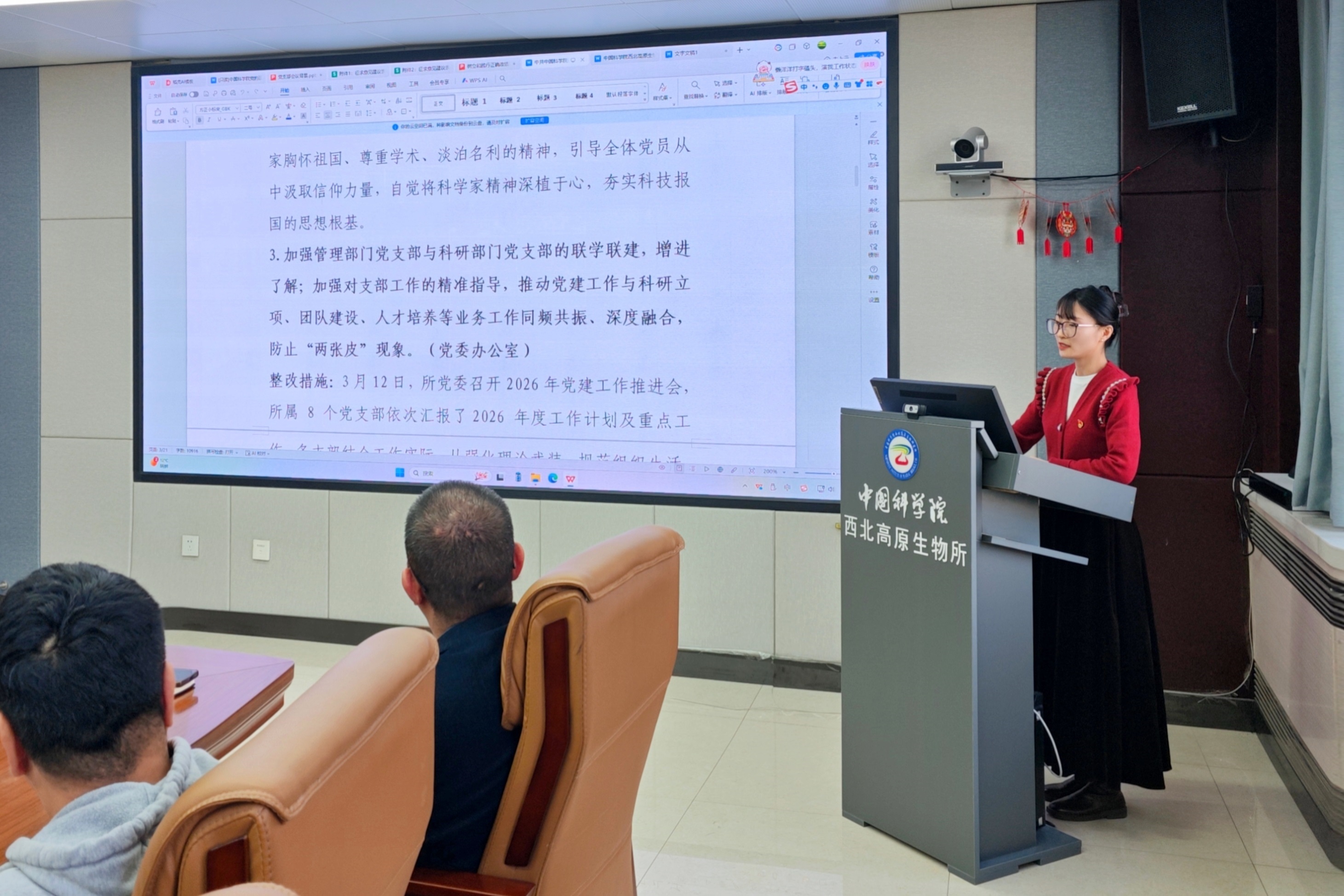 宣傳委員董亞慧通報(bào)了《中共中國(guó)科學(xué)院西北高原生物研究所委員會(huì)2025年度黨員領(lǐng)導(dǎo)干部民主生活會(huì)征求意見(jiàn)反饋》,重點(diǎn)圍繞理論武裝提升、管理機(jī)制創(chuàng)新、人才隊(duì)伍建設(shè)、基礎(chǔ)設(shè)施改善等方面問(wèn)題進(jìn)行了反饋。