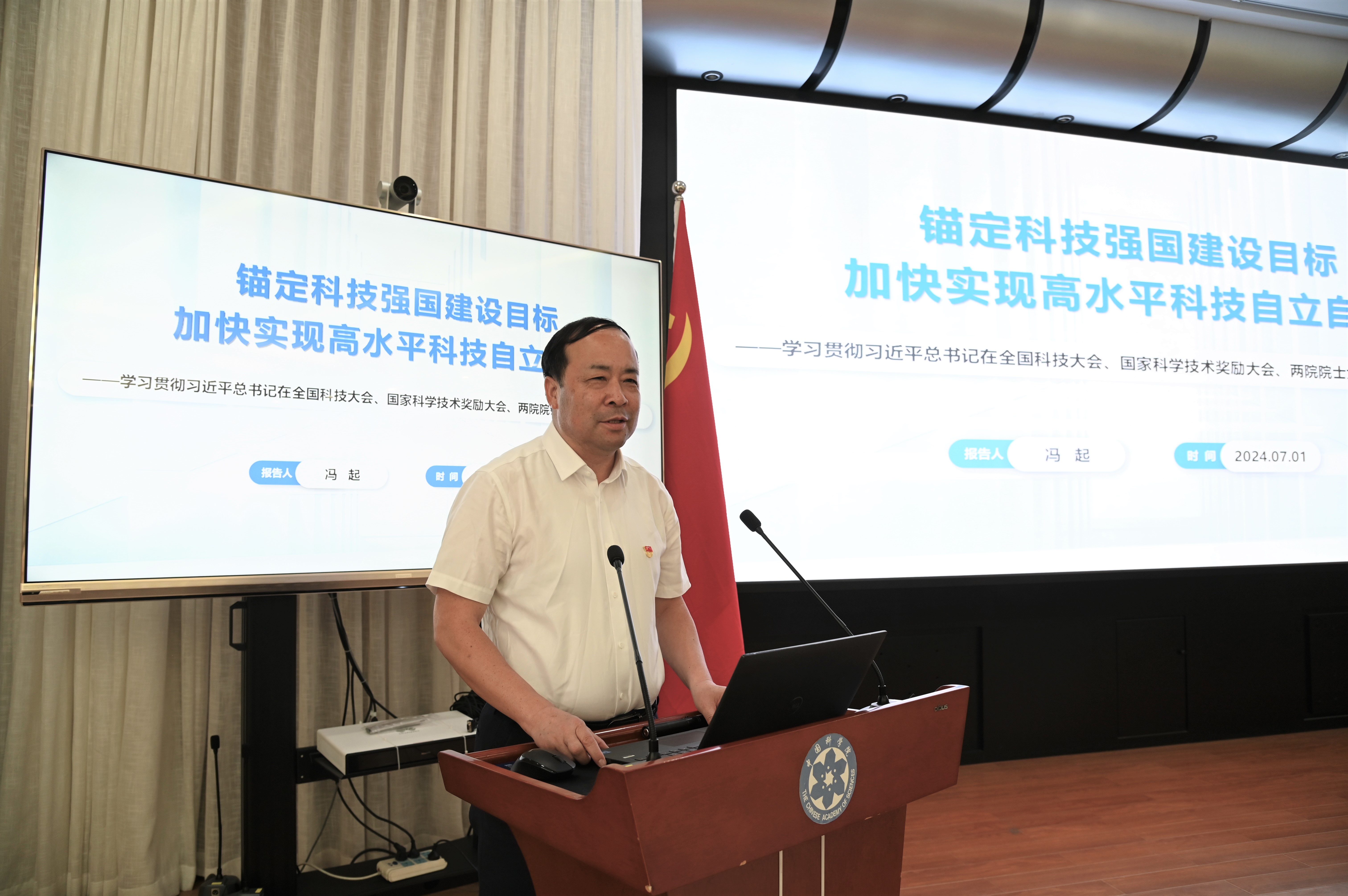 蘭州分院分黨組書記、院長馮起作《錨定科技強國建設(shè)目標(biāo)? 加快實現(xiàn)高水平科技自立自強》專題報告,傳達(dá)學(xué)習(xí)習(xí)近平總書記重要講話和全國科技大會精神。他強調(diào),科技興則民族興,科技強則國家強,要牢記國家戰(zhàn)略科技力量職責(zé)定位,面向國家重大需求和科技前沿持續(xù)凝練與組織實施重大科技任務(wù),要深刻認(rèn)識科技的戰(zhàn)略先導(dǎo)地位和根本支撐作用,學(xué)習(xí)科技新知識、掌握科技新技能、增強推動科技工作新本領(lǐng),在搶占科技制高點新征程中貢獻(xiàn)更多力量,為科技事業(yè)發(fā)展再立新功。