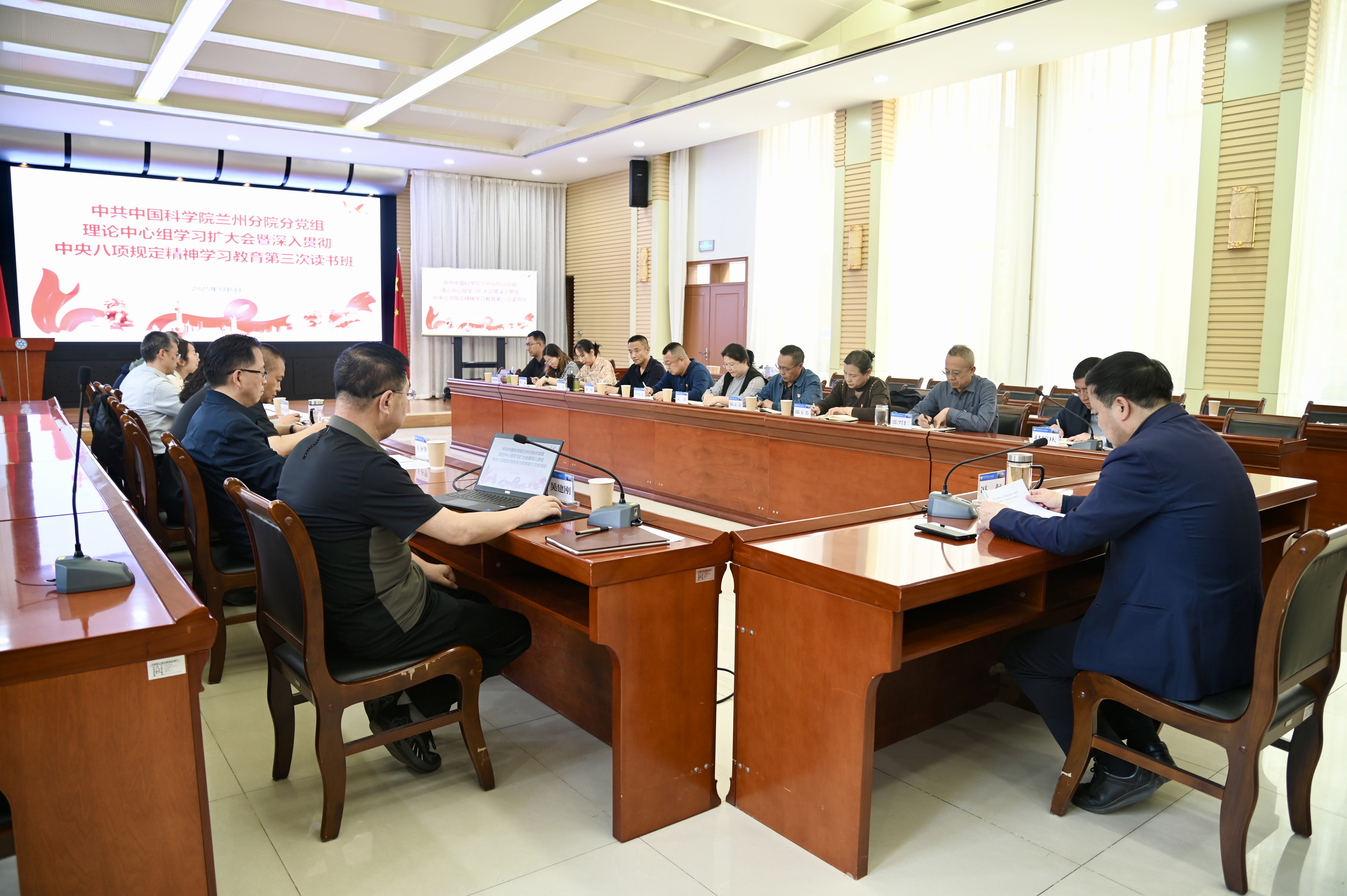 5月6日下午,中國科學院蘭州分院分黨組召開理論學習中心組學習擴大會議暨深入貫徹中央八項規(guī)定精神學習教育讀書班第三次集體學習。會議由蘭州分院分黨組書記、院長馮起主持,分黨組領導班子成員,系統(tǒng)單位黨委委員,機關黨委委員、紀委委員、高級業(yè)務主管四級職員、各部門負責人、各黨支部書記參加會議。