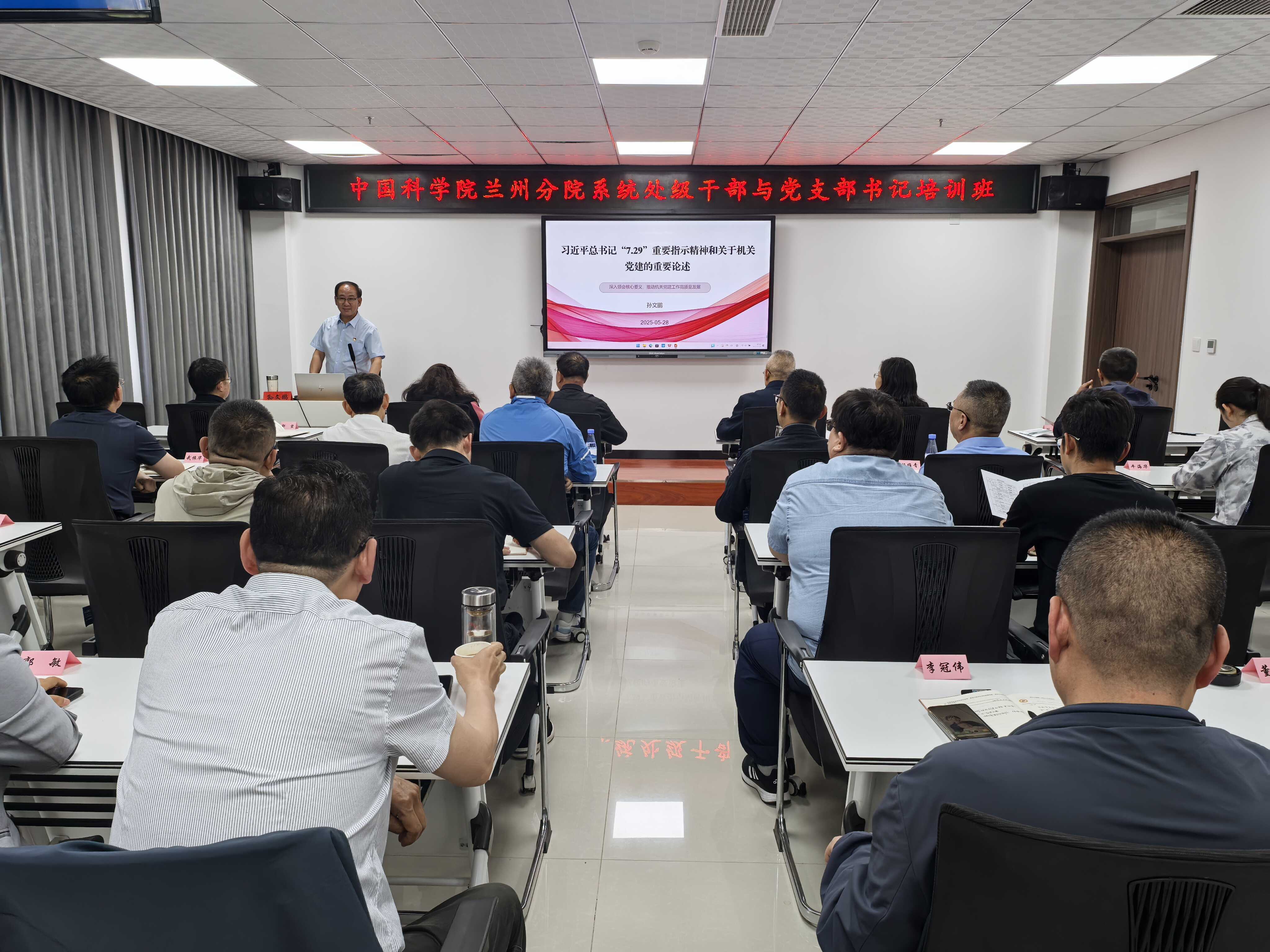 為推動深入貫徹中央八項規(guī)定精神學習教育走深走實,嚴明崗位工作紀律、錘煉優(yōu)良工作作風,5月26日至30日,中國科學院蘭州分院分黨組在甘肅南梁干部學院舉辦處級干部與黨支部書記培訓班,蘭州分院系統(tǒng)各單位近30名處級干部與黨支部書記參加培訓。蘭州分院分黨組成員、紀檢組組長吳建剛出席開班儀式并致辭,甘肅南梁干部學院副院長劉崇剛為培訓班授旗。