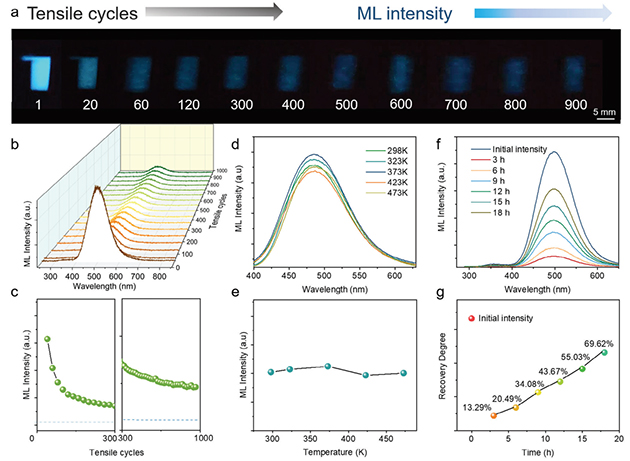 摩擦/力致發(fā)光材料能將機(jī)械力學(xué)信號直接轉(zhuǎn)化成光信號,在結(jié)構(gòu)健康監(jiān)測、生物力學(xué)傳感、人工智能、人機(jī)交互等領(lǐng)域具有重要的應(yīng)用價值。然而,現(xiàn)有摩擦/力致發(fā)光材料普遍存在難以自恢復(fù)、重復(fù)性差以及易受環(huán)境干擾等問題,嚴(yán)重限制了其實際應(yīng)用。