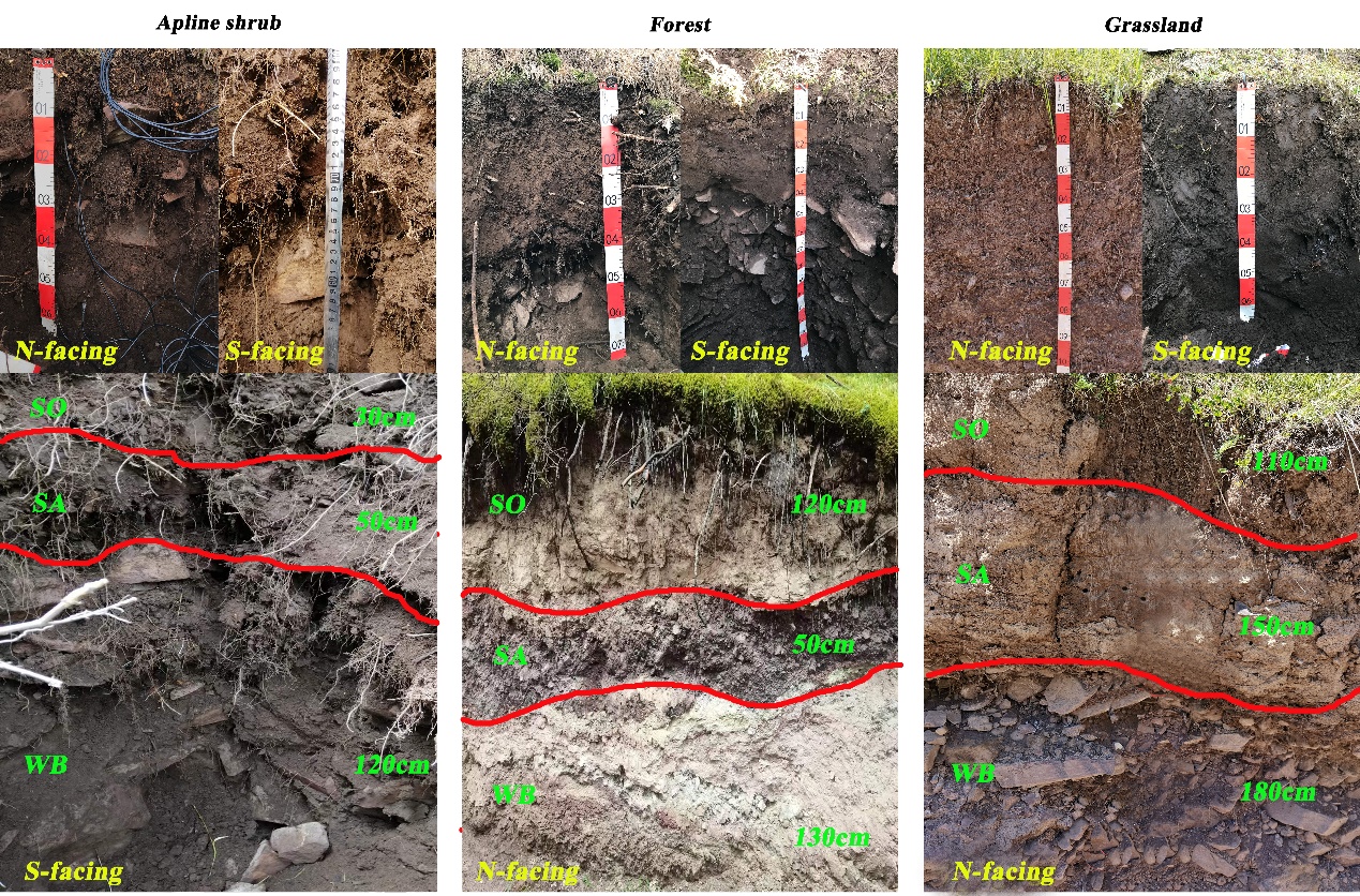 圖1 剖面中土壤和風(fēng)化基巖特征。SO:土壤,SA: 腐泥土,WB:風(fēng)化基巖。