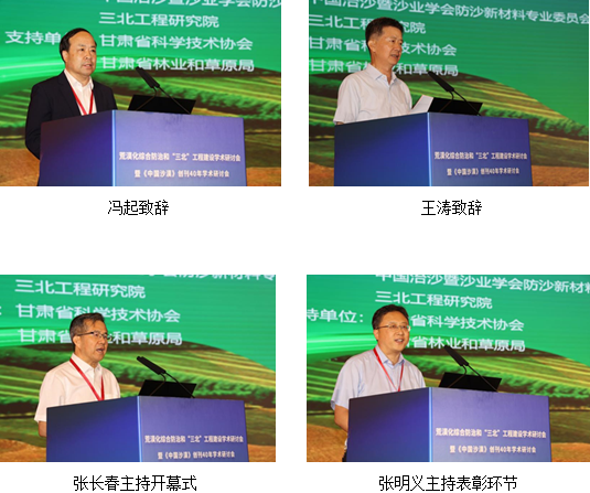 大會由中國地理學(xué)會沙漠分會、中國治沙暨沙業(yè)學(xué)會防沙新材料專業(yè)委員會、三北工程研究院共同主辦,甘肅省科學(xué)技術(shù)協(xié)會、甘肅省林業(yè)和草原局支持,中國科學(xué)院西北生態(tài)環(huán)境資源研究院、干旱區(qū)生態(tài)安全與可持續(xù)發(fā)展重點實驗室、甘肅省科學(xué)技術(shù)期刊學(xué)會和《中國沙漠》編輯部共同承辦。西北研究院黨委書記張長春主持開幕式。