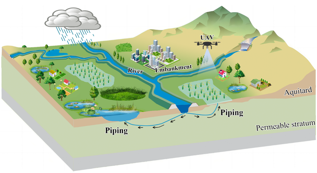 堤防是抵御洪水的關(guān)鍵屏障,但滲漏、管涌等險情隱患常因地質(zhì)條件復(fù)雜、植被覆蓋或極端天氣難以及時發(fā)現(xiàn),導(dǎo)致潰堤風(fēng)險。傳統(tǒng)人工巡檢效率低且存在風(fēng)險,現(xiàn)有地球物理探測技術(shù)成本高、實時性較差。近年來,無人機(jī)與人工智能技術(shù)的結(jié)合為堤防智能化巡檢開辟了新路徑,但對復(fù)雜自然場景下的適用性仍面臨挑戰(zhàn)。