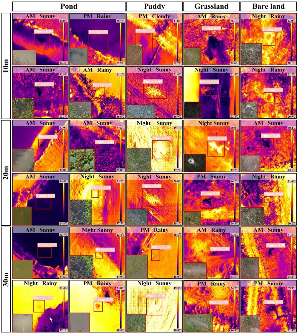 此外,研究還驗證了模型在暴雨、夜間及植被遮擋場景下的魯棒性,為全天候監(jiān)測提供支撐。其突出優(yōu)勢表現(xiàn)為:一是全天候適應(yīng)性。熱紅外成像突破可見光局限,可探測植被或水體下隱蔽險情隱患,夜間及雨天仍保持高精度。二是高效實時性。邊緣計算使無人機(jī)在飛行中即時分析數(shù)據(jù),減少數(shù)據(jù)傳輸延遲,顯著提升了應(yīng)急響應(yīng)速度。三是場景普適性。模型在長江、淮河、鄱陽湖等不同地質(zhì)條件的堤防段均表現(xiàn)優(yōu)異,具備大范圍推廣的潛力。四是模式革新從“人巡”到“機(jī)巡”的轉(zhuǎn)型,大幅降低人力成本與安全風(fēng)險,推動了防汛作業(yè)智能化。