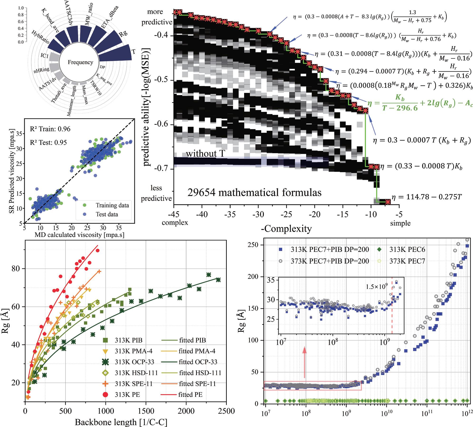 以上研究成果以“Exploring high-performance viscosity index improver polymers via highthroughput molecular dynamics and explainable AI”為題發(fā)表在npj computational materials上,蘭州化物所周銳博士生為論文第一作者,蘭州化物所鮑路瑤助理研究員、周峰研究員和蘭州大學卜偉鋒教授為共同通訊作者。