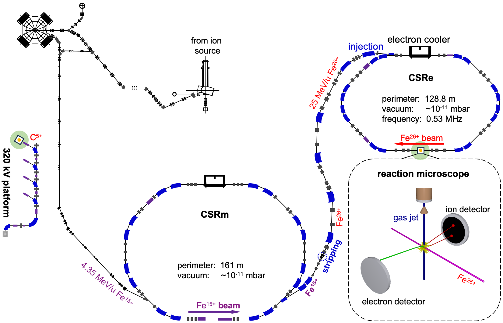 1:蘭州重離子加速器大科學(xué)裝置和反應(yīng)顯微成像譜儀示意圖(圖源/近代物理所)