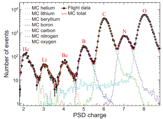 圖1:“悟空”號(hào)用來(lái)鑒別宇宙射線核素的PSD電荷譜