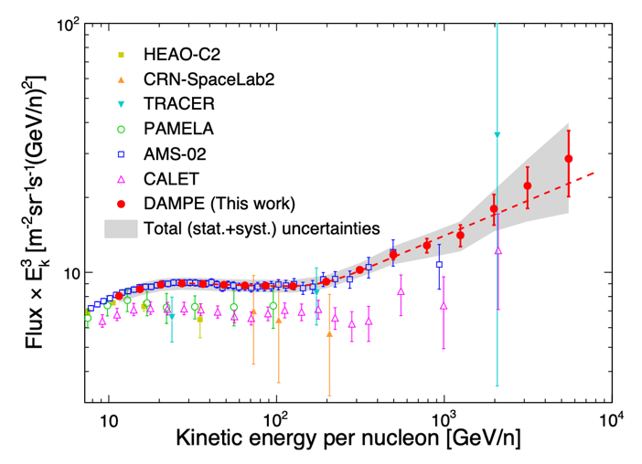 圖2:“悟空”號(hào)對(duì)宇宙線硼元素能譜的測(cè)量結(jié)果