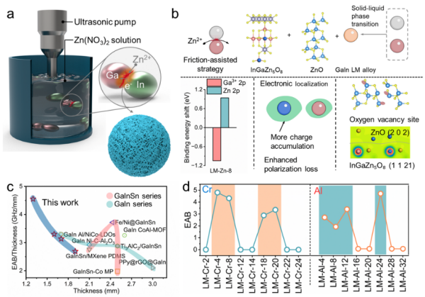 青海鹽湖所/西北工業(yè)大學(xué)聯(lián)合團(tuán)隊的研究工作首次從界面電子調(diào)控的微觀機(jī)制層面為解決低還原電位金屬離子錨定難題提供了創(chuàng)新路徑。其成果以“Friction-Assisted Liquid Metal-Driven Anchoring of Low Redox Potential Metal Ions for Enhanced Electromagnetic Wave Absorption(摩擦輔助液態(tài)金屬驅(qū)動低還原電位金屬離子錨定實(shí)現(xiàn)高效電磁波吸收)”為題發(fā)表于《Advanced Science》期刊。研究通過引入摩擦輔助液態(tài)金屬策略,突破傳統(tǒng)電化學(xué)勢壘限制,實(shí)現(xiàn)了對Zn2+、A3+、Cr3+等難還原離子的高效捕獲與穩(wěn)定錨定,并構(gòu)建出具有豐富異質(zhì)界面和梯度極化特性的液態(tài)金屬基復(fù)合吸波材料。該工作系統(tǒng)揭示了液態(tài)金屬在摩擦過程中產(chǎn)生的高能局域電場與自由電子云對離子還原動力學(xué)的促進(jìn)機(jī)制,提出了“摩擦-電子供體-界面錨定”協(xié)同作用新范式,為設(shè)計兼具寬頻吸收、強(qiáng)衰減能力與輕質(zhì)特性的下一代鹽湖基吸波材料提供了普適性策略。吳宏景教授與劉虎研究員為論文的通訊作者。