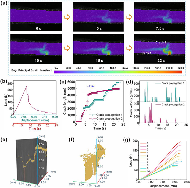 圖3.裂紋擴展過程的原位追蹤和斷面三維形貌重構(gòu)以及循環(huán)加載試驗
