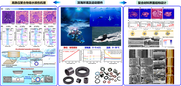 相關(guān)成果以“Carbon fabric/polyetheretherketone composites for deep-sea applications:enhancement of strong-robust interface”和“Response of seawater lubricated fabric-reinforced phenolic resin composites under high hydrostatic pressure”為題分別發(fā)表在Composites Part A: Applied Science and ManufacturingPolymer Degradation and Stability上。范藝豪博士為論文第一作者,劉昊副研究員和王建章研究員為共同通訊作者。