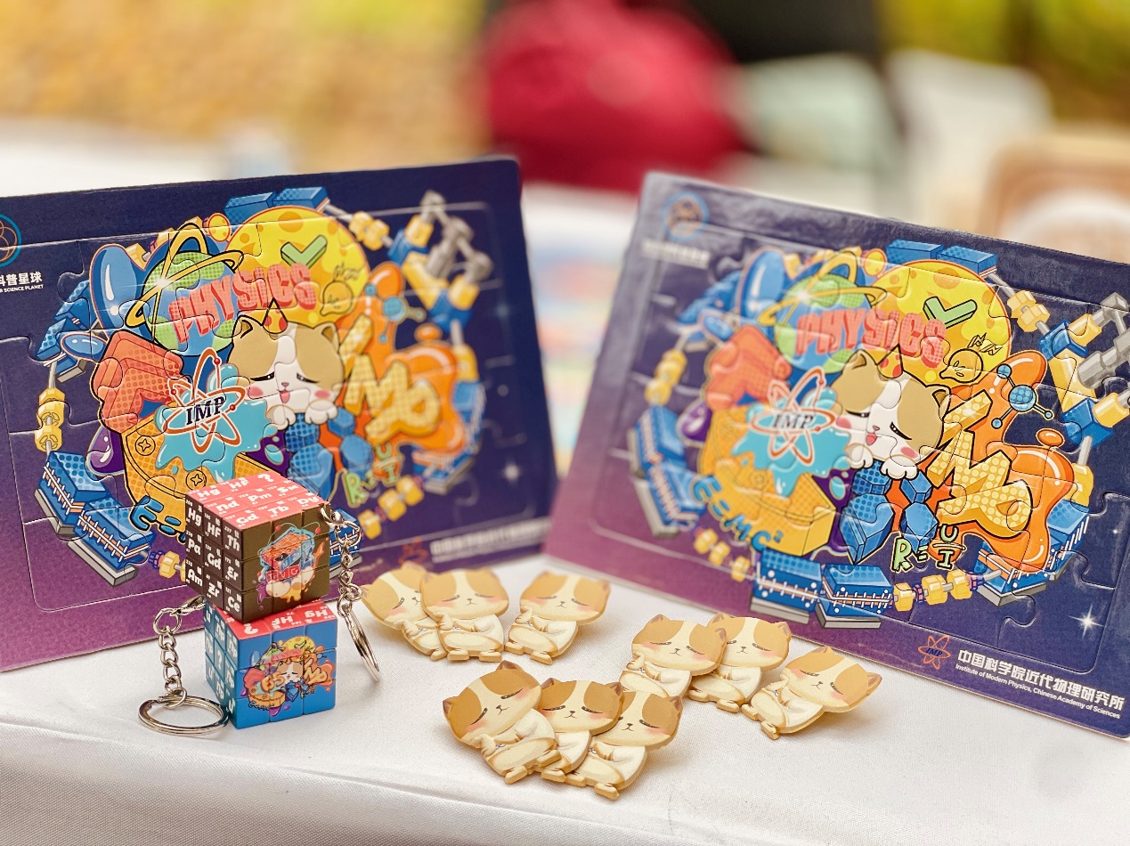 近代物理所通過現(xiàn)場(chǎng)展示“碳離子精準(zhǔn)治療癌癥技術(shù)及裝置”模型,使得公眾直觀了解到科技創(chuàng)新成果如何促進(jìn)人民生命健康領(lǐng)域的發(fā)展。近代物理所還展出了以“原子核”“新核素”“加速器”為主題的水晶球夜燈、魔方鑰匙扣、拼圖等文創(chuàng)展品。