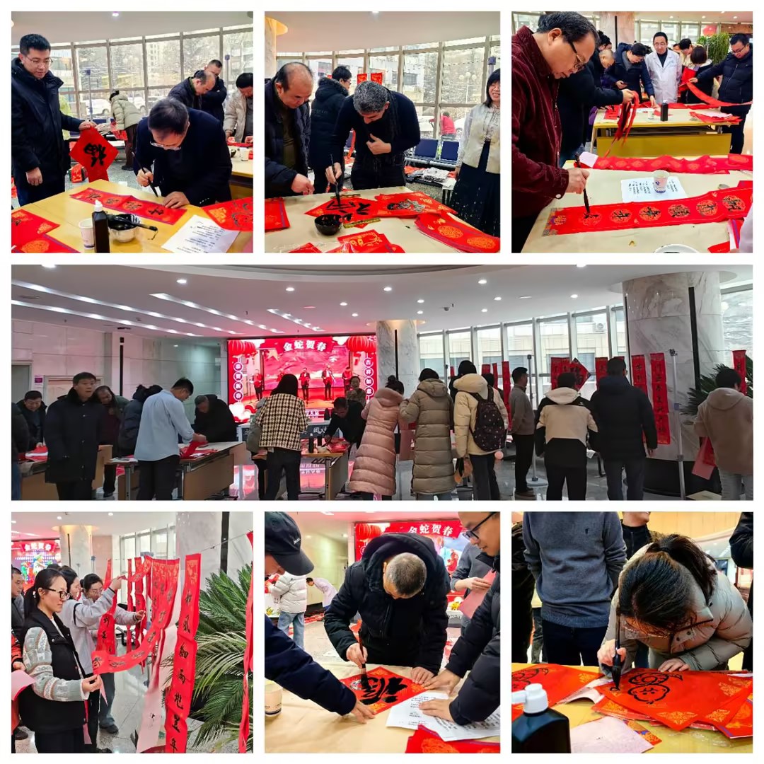 活動(dòng)現(xiàn)場(chǎng),墨香彌漫、紅紙翻飛,書法家現(xiàn)場(chǎng)潑墨揮毫、各顯身手,楷書、行書、隸書等各式字體躍然紙上,一幅幅寓意吉祥的春聯(lián),一張張喜氣盈盈的大紅“?!弊郑笠缰鴮?duì)幸福生活的熱切期盼和美好憧憬。職工們紛紛參與其中,在一旁添墨、壓帖、晾春聯(lián),爭(zhēng)相領(lǐng)取自己滿意的春聯(lián)佳對(duì)。