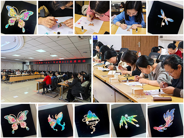 313日下午,組織開(kāi)展了“指尖傳非遺”點(diǎn)翠DIY活動(dòng)。培訓(xùn)老師向大家介紹了中國(guó)點(diǎn)翠工藝非物質(zhì)文化遺產(chǎn)的歷史底蘊(yùn)和文化價(jià)值,詳細(xì)講解了點(diǎn)翠胸針的制作過(guò)程。涂抹亮油、貼貝殼碎片、表面封層、定型……一片片細(xì)小的螺鈿片鑲嵌在胚底,斑斕色彩流動(dòng)交融,鮮活生動(dòng)?;顒?dòng)帶大家品味了傳統(tǒng)工藝的浪漫、領(lǐng)略了沉淀千年的藝術(shù)瑰寶。