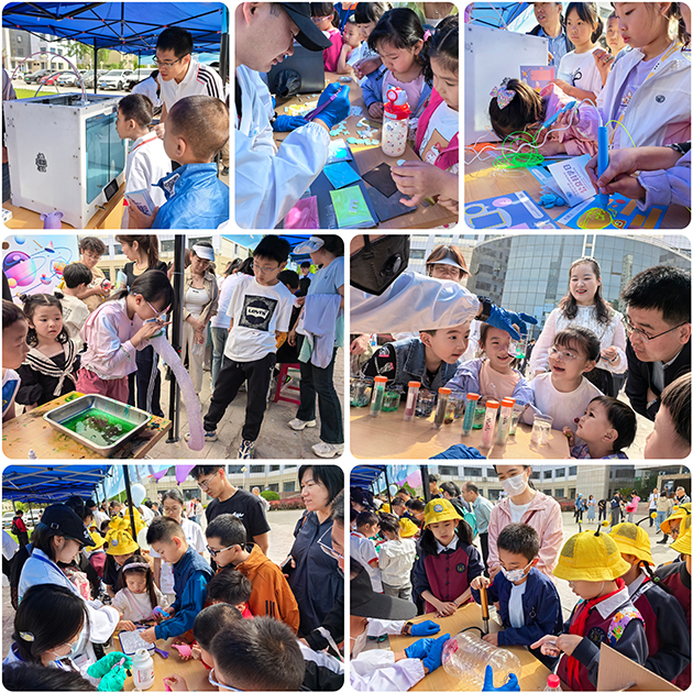 科學(xué)實驗嗨廣場精心設(shè)置了“憤怒的小河豚”“掌心里的神奇火焰”“奇妙的3D打印”“點水成膠”“神奇的摩擦發(fā)光”“水中花園”“‘瓶’空造云”“趣味泡泡龍”“多彩多樣”等科學(xué)互動小實驗和化學(xué)元素對對碰、薯光超腦戰(zhàn)互動游戲。讓學(xué)生在“像科學(xué)家一樣思考”的過程中,理解科學(xué)并非一成不變的真理,從而真正愛上“探索未知”的樂趣。