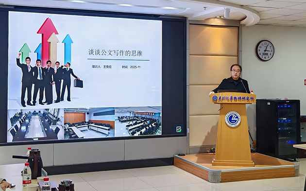 培訓(xùn)邀請(qǐng)?zhí)m州大學(xué)王安應(yīng)老師作了題為“談?wù)劰膶懽鞯乃季S”的專題報(bào)告。他從思維在公文寫作中的作用、公文寫作的底層邏輯和如何正確使用AI工具等方面解析了公文寫作的本質(zhì)規(guī)律,通過典型案例對(duì)比,生動(dòng)闡釋了“邏輯清晰、格式規(guī)范、語言得體”在公文寫作中的重要性,為參會(huì)人員打開了公文寫作的新思路。蘭州化物所黨委辦公室(所辦公室)主任尹曉葉和綜合檔案室副主任張磊分別圍繞公文處理常見問題和文書檔案建檔規(guī)范作了主題報(bào)告。