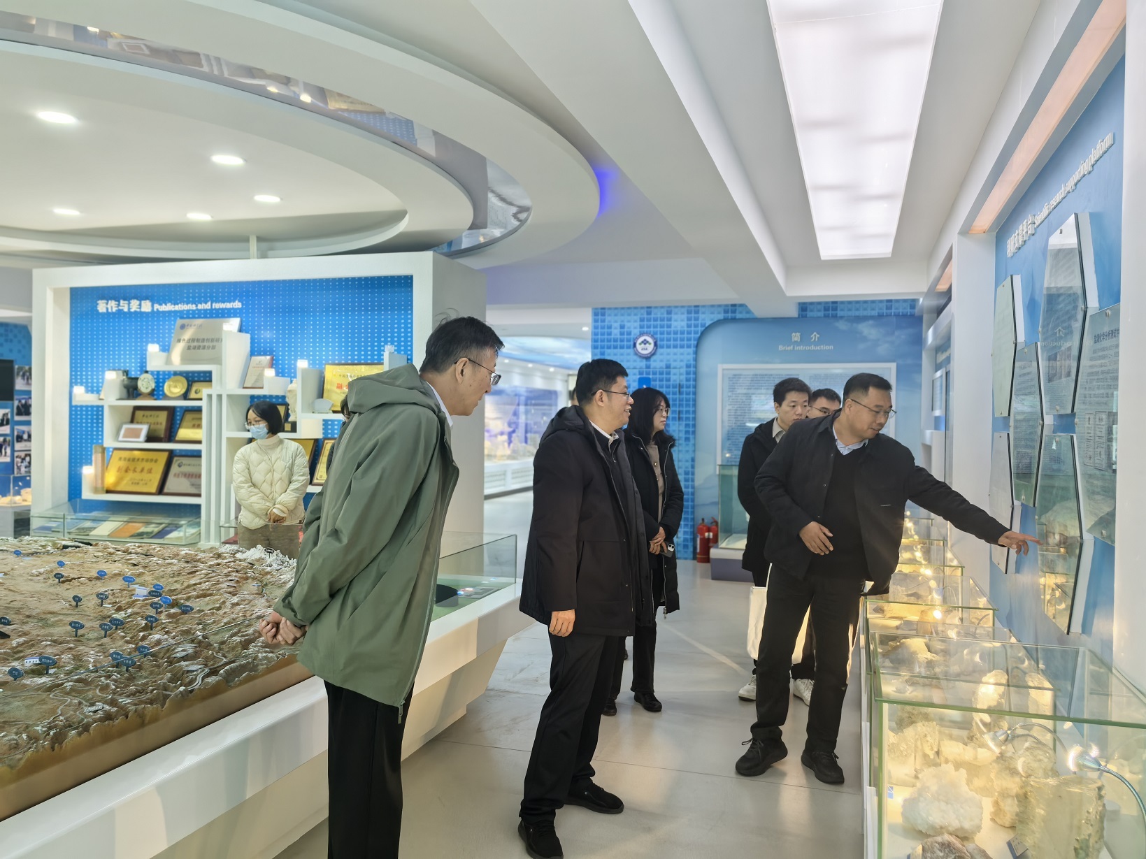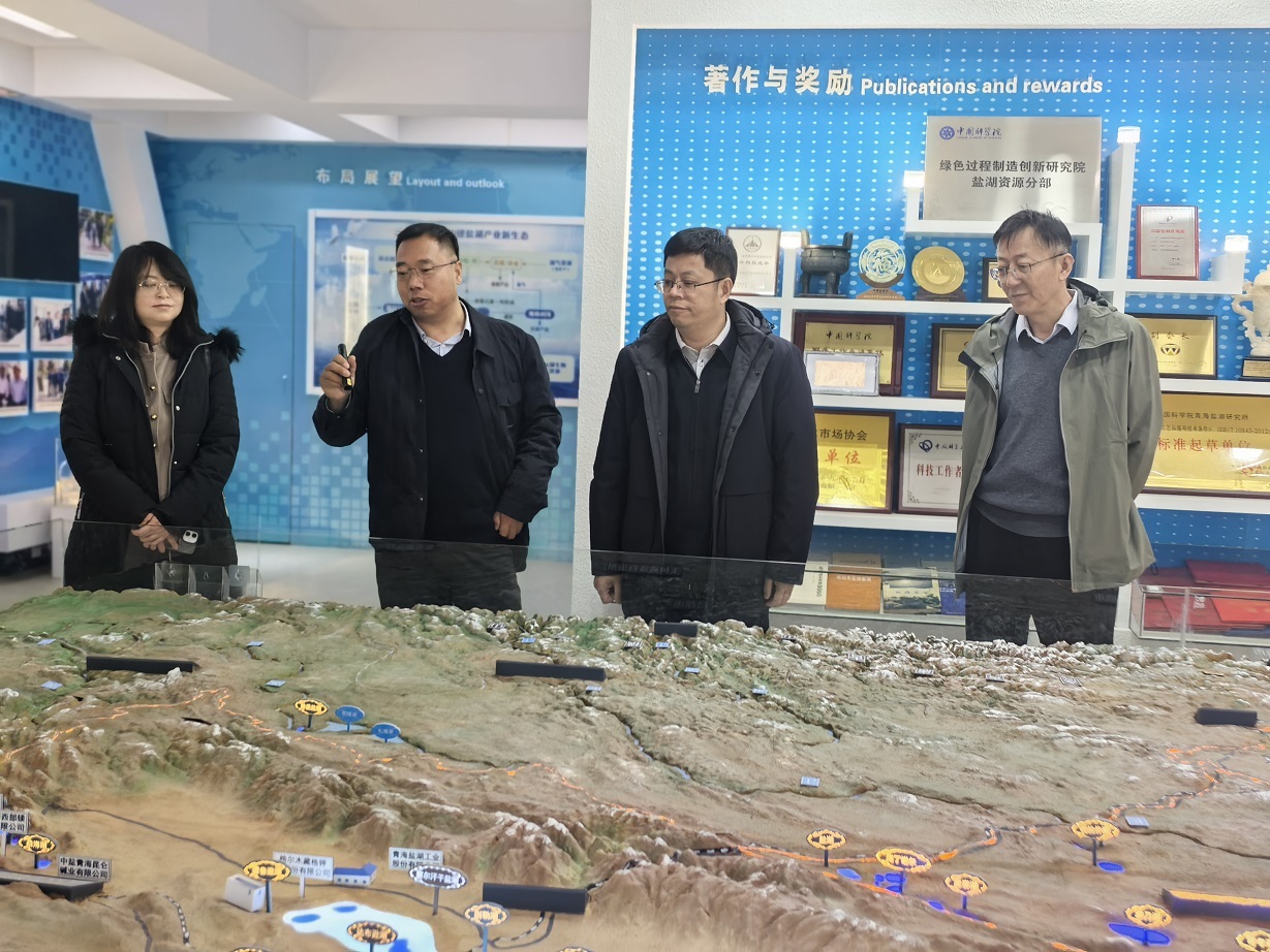 萬士林一行先后參觀了青海鹽湖所科技成果展廳及地質(zhì)與環(huán)境實(shí)驗(yàn)室展覽館,詳細(xì)了解了研究所的歷史沿革、科研平臺建設(shè)、人才隊伍構(gòu)成、重要科研成果及在鹽湖資源開發(fā)利用方面的研究進(jìn)展。