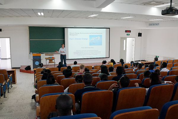 《Overview of Climate Change Science》由國際學院組織開設,是面向國際留學生全英文授課的專業(yè)核心課,由來自西北研究院、中國科學院青藏高原研究所、復旦大學、中山大學的6位專家共同講授。課程主要對氣候變化科學作系統(tǒng)性概要介紹,使研究生認識氣候變化科學的基本理論體系和主要研究內容,掌握氣候變化的重要研究方法和手段,了解氣候變化研究的前沿方向和熱點問題。課程具有如下特色:融合課堂講授、專題講座、分組報告和討論答疑等多種教學模式;在系統(tǒng)化理論知識講授基礎上,增加氣候變化前沿、學科發(fā)展歷史和野外科考圖片視頻等多樣教學內容;鼓勵留學生關注各自國家和地區(qū)、中國和全球氣候變化研究的進展和應對氣候變化的行動,培養(yǎng)學生共同應對氣候變化挑戰(zhàn)和構建人類命運共同體的理念。該課程自2015年開設以來,已有來自“一帶一路”沿線和歐美等近30個國家500多名留學生選修該課程,受到留學生的歡迎和廣泛好評。