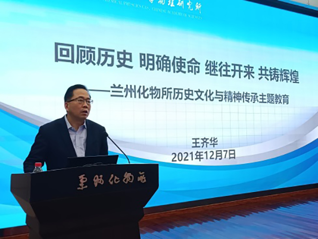 王齊華表示,蘭州化物所建所60余年以來,經(jīng)過幾代科研工作者的艱苦努力、開拓創(chuàng)新,為國家經(jīng)濟(jì)建設(shè)、科技事業(yè)發(fā)展做出了重大貢獻(xiàn)。黨的十八大以來,黨中央高度重視科技創(chuàng)新,把科技創(chuàng)新放在國家發(fā)展全局的核心位置。青年科研人員和管理與支撐部門人員要牢記新時(shí)期責(zé)任與使命,深入了解研究所光輝歷程,繼承和發(fā)揚(yáng)老一輩科學(xué)家胸懷祖國、服務(wù)人民的優(yōu)秀品質(zhì),弘揚(yáng)新時(shí)代科學(xué)家精神,深刻領(lǐng)會(huì)“國家事”“國家責(zé)”的內(nèi)涵和要求,牢記“國家隊(duì)”“國家人”的使命擔(dān)當(dāng),立足崗位實(shí)際,為研究所科技創(chuàng)新和改革發(fā)展做出應(yīng)有的貢獻(xiàn),為實(shí)現(xiàn)習(xí)近平總書記對(duì)中科院提出的“四個(gè)率先”和“兩加快一努力”要求和建設(shè)世界科技強(qiáng)國貢獻(xiàn)智慧和力量。