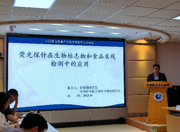 宋波濤教授介紹了光周期信號調(diào)控馬鈴薯開花與結薯的分子機制,提出了研究過程中發(fā)現(xiàn)的新問題。蘭州化物所環(huán)境材料與生態(tài)化學研究發(fā)展中心材料與分離分析課題組徐建副研究員作了題為“熒光探針在生物標志物和食品農(nóng)殘檢測中的應用”的報告,介紹了熒光探針的發(fā)展歷程、生物標記物的檢測及熒光探針在食品農(nóng)殘中的應用。