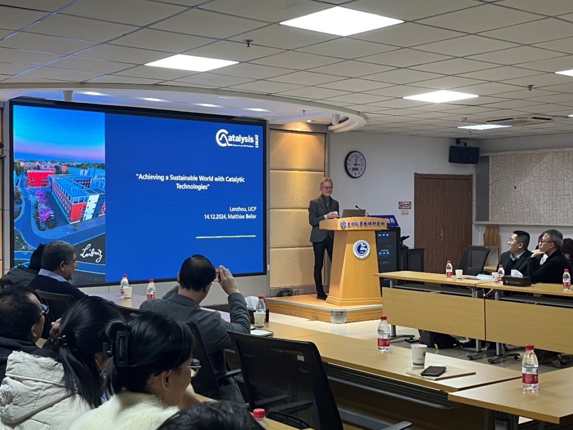12月14日,德國(guó)萊布尼茨催化研究所(LIKATMattias Beller院士應(yīng)邀訪問(wèn)中國(guó)科學(xué)院蘭州化學(xué)物理研究所,并作了題為“Achieving a Sustainable World with Catalytic Technologies”的學(xué)術(shù)報(bào)告。
