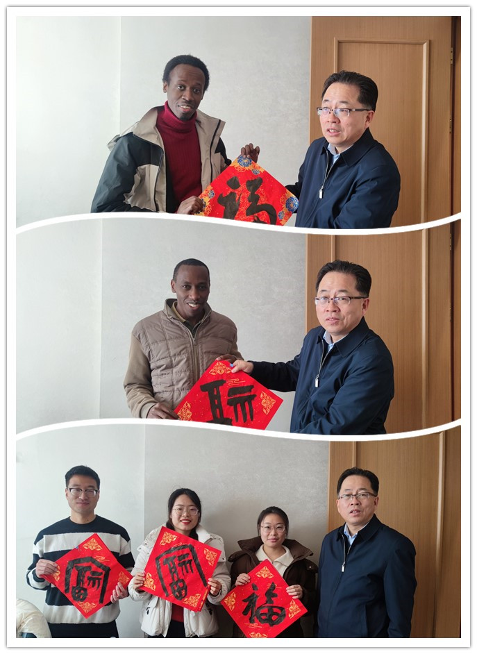 蘭州化物所黨委書記王齊華、副所長石峰了解了外籍導(dǎo)師在研究所的工作生活情況,聽取了對研究生教育工作的意見建議,詢問了同學(xué)們的留所原因和假期安排,叮囑同學(xué)們注意實驗室安全、宿舍用電安全和交通安全等,合理安排假期生活,并向大家送上新春祝福和春節(jié)禮包,祝福大家在研究所度過一個平安、快樂、祥和的春節(jié)。