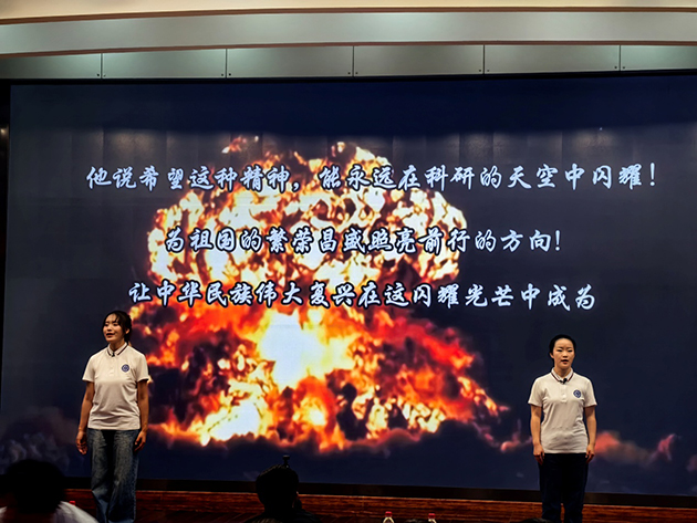 宣講會(huì)邀請(qǐng)了中國(guó)科學(xué)院大學(xué)“兩彈一星”精神宣講團(tuán)作了“青年挺膺擔(dān)?厚植家國(guó)情懷”的專題宣講,以“講述信仰故事、演繹時(shí)代精神、傳承文化使命”為主線,通過(guò)宣講、演繹、短劇等不同形式表演了《啟航》《執(zhí)著》《家書(shū)》《追夢(mèng)者?逐夢(mèng)者》《做祖國(guó)的 “鏈條”》等節(jié)目,講述5位元?jiǎng)资钢緢?bào)國(guó)的動(dòng)人故事,帶領(lǐng)現(xiàn)場(chǎng)師生沉浸式聆聽(tīng)了老一輩科學(xué)家的動(dòng)人故事,回望了那段艱苦卓絕卻又激情燃燒的歲月,體味了老一輩科學(xué)家熱愛(ài)祖國(guó)、無(wú)私奉獻(xiàn)的家國(guó)情懷。