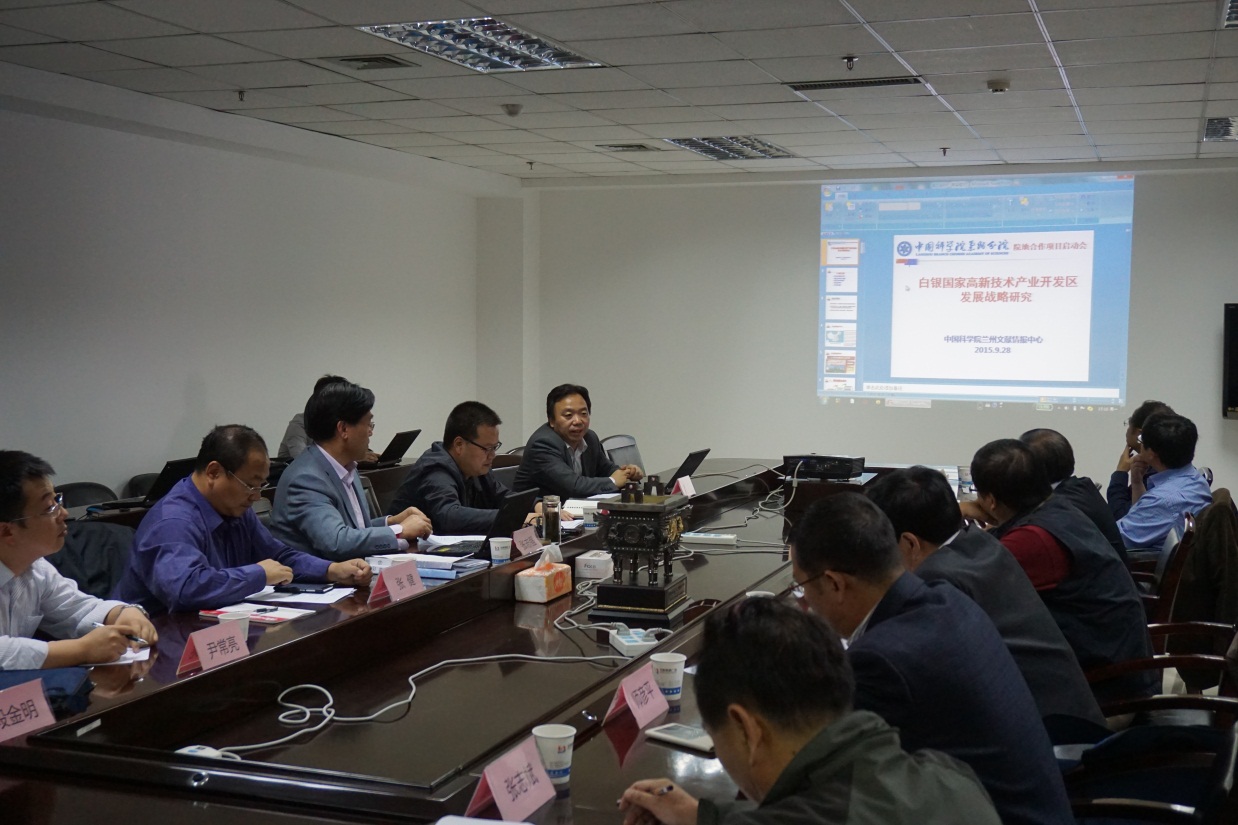 9月28日,“白銀國家高新技術(shù)開發(fā)區(qū)創(chuàng)新發(fā)展戰(zhàn)略研究”項目啟動會在中國科學院蘭州文獻情報中心召開,來自甘肅省政府研究室、中科院蘭州分院、中科院近代物理研究所、中科院蘭州化學物理研究所、西北師范大學、白銀國家高新技術(shù)開發(fā)區(qū)等單位的十位專家對項目研究方案進行了深入咨詢。會議由蘭州文獻情報中心主任張志強研究員主持,中國科學院蘭州分院副院長楊青春、院長助理張健以及院地科技合作處負責人等參加了會議。