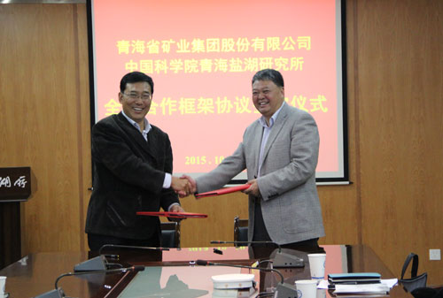 10月10日下午,青海省礦業(yè)集團股份有限公司董事長曹大嶺一行5人到青海鹽湖所訪問交流,青海鹽湖所主持工作的副所長段東平和青海省礦業(yè)集團股份有限公司董事長曹大嶺代表各自單位簽署了全面合作框架協(xié)議。青海省礦業(yè)集團股份有限公司副總經(jīng)理蘆滿吉、技術(shù)管理部部長汪根存等和青海鹽湖所部分中層干部、科研人員參加了交流座談和簽字儀式。