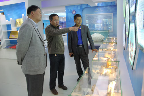 曹大嶺一行參觀了青海鹽湖所的鹽湖化學分析測試部和科技展廳,對青海鹽湖所擁有的現(xiàn)代化大型分析儀器以及青海鹽湖所的歷史沿革、科研平臺、人才隊伍、科技成果和正在承擔的重要科研項目等進行了深入了解。