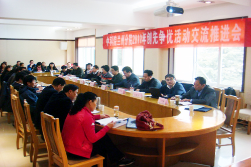 為深入推進(jìn)創(chuàng)先爭(zhēng)優(yōu)活動(dòng)扎實(shí)有序開(kāi)展,不斷增強(qiáng)黨組織和黨員創(chuàng)先爭(zhēng)優(yōu)意識(shí),確保“十二五”規(guī)劃和“創(chuàng)新2020”順利實(shí)施。3月27—28日,蘭州分院召開(kāi)創(chuàng)先爭(zhēng)優(yōu)活動(dòng)再宣傳、再動(dòng)員會(huì)議。