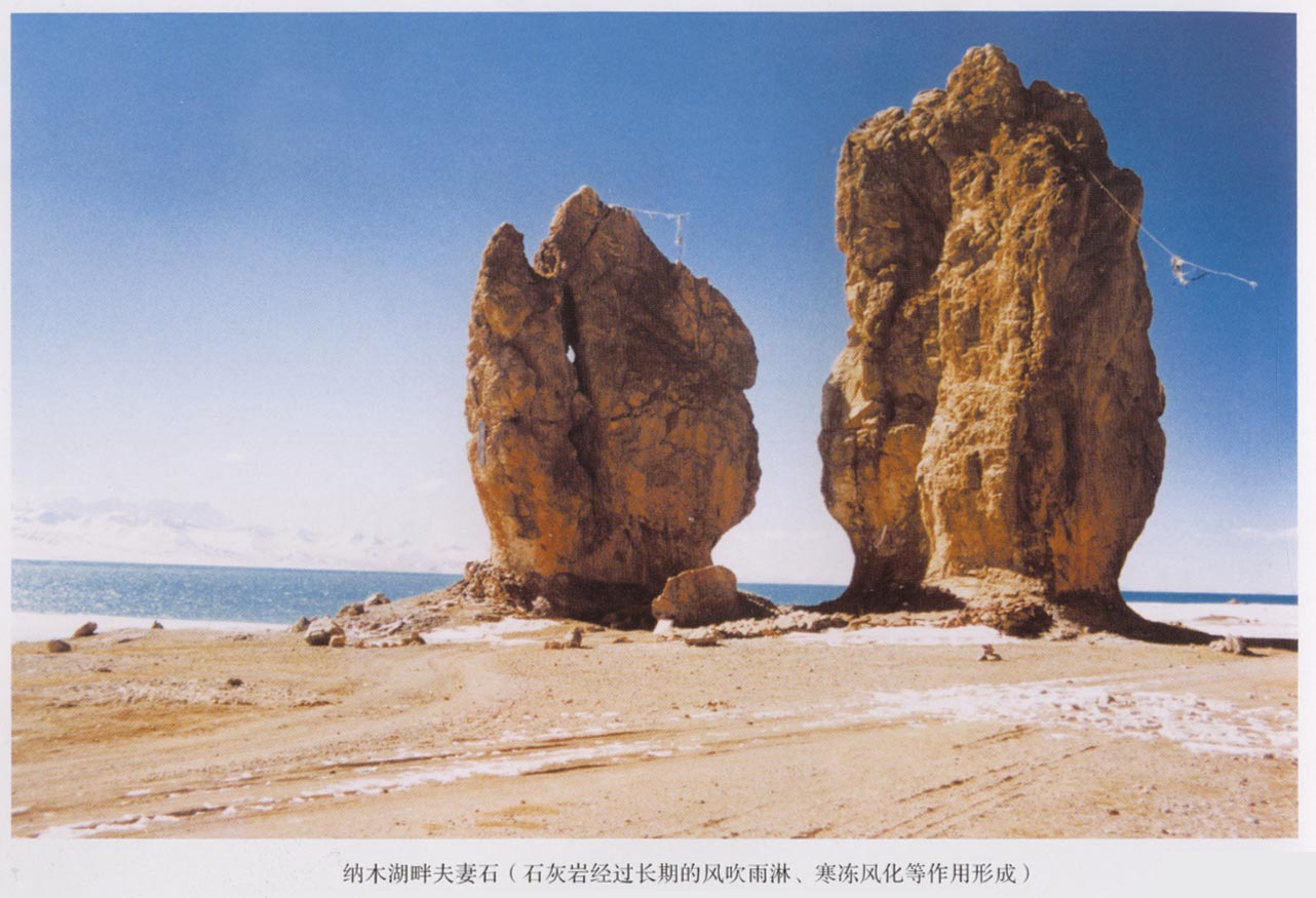青藏高原石灰?guī)r的分布面積約20萬平方公里,大自然的神工鬼斧雕塑了奇形怪狀的巖溶形態(tài)。位于高原東緣的龍、九寨溝是石灰?guī)r溶蝕和碳酸鈣沉積形成的巖溶景色的代表,在高原腹地的唐古拉山山坡安多山上有巖溶洞、巖溶峰和其它奇形怪狀的巖溶地貌。在西藏昌都附近的大喇嘛山下有一排似長城?樣的峰林墻組合。在阿里地區(qū)的班公湖畔有許多峰林溶洞,是鳥類棲息的最佳天然場所,形成了藍天、白云、鳥飛、魚躍、湖靜、岸奇的人間仙 境。在青藏公路沿線的雁石坪溫泉一帶也分布著由泉華堆積形成的泉華錐和石灰?guī)r造型。
